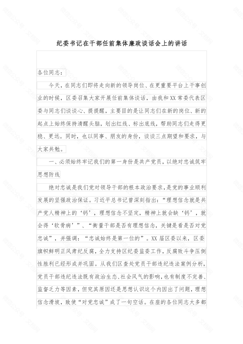 首页工作文档纪委书记在干部任前集体廉政谈话会上的讲话