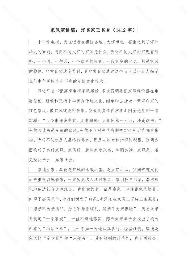 首页工作文档家风演讲稿:定其家正其身(1412字)