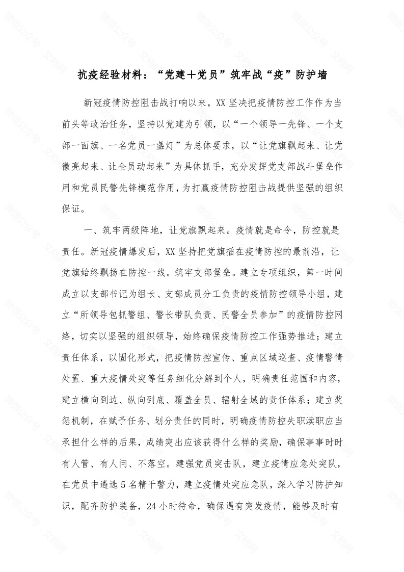 首页工作文档抗疫经验材料:“党建+党员”筑牢战“疫”防护墙