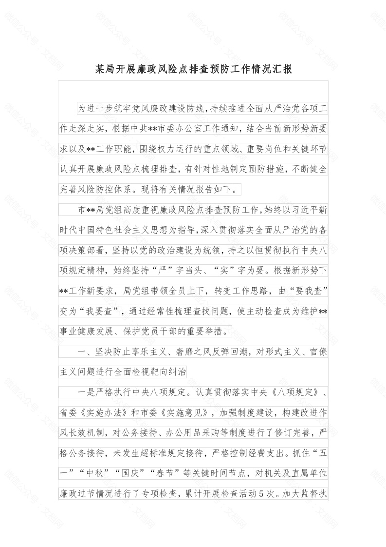 首页工作文档某局开展廉政风险点排查预防工作情况汇报
