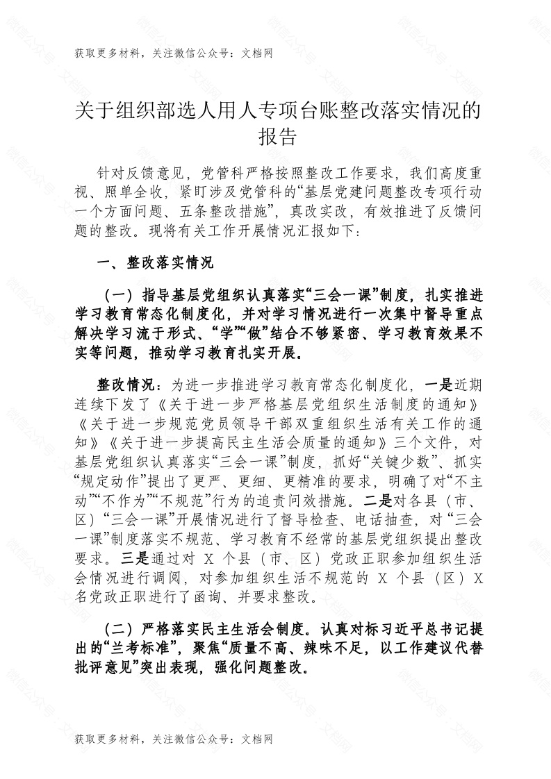 首页学习提升关于组织部选人用人专项台账整改落实情况的报告