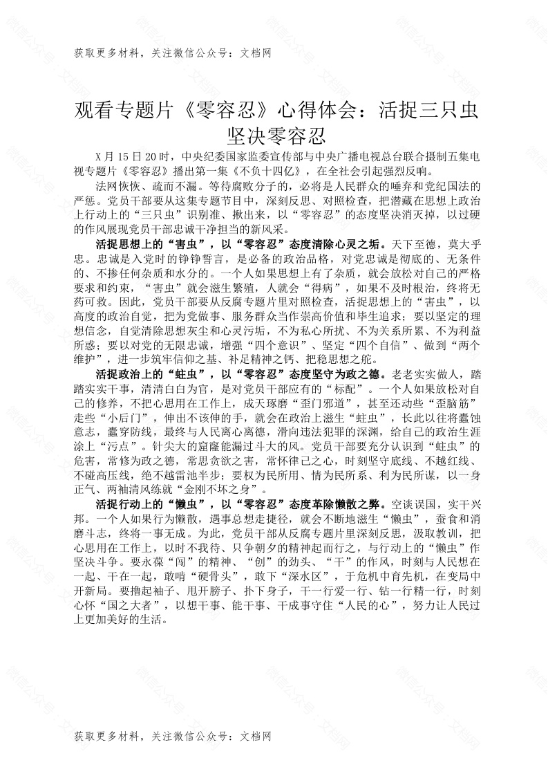 观看专题片《零容忍》心得体会:活捉三只虫坚决零容忍