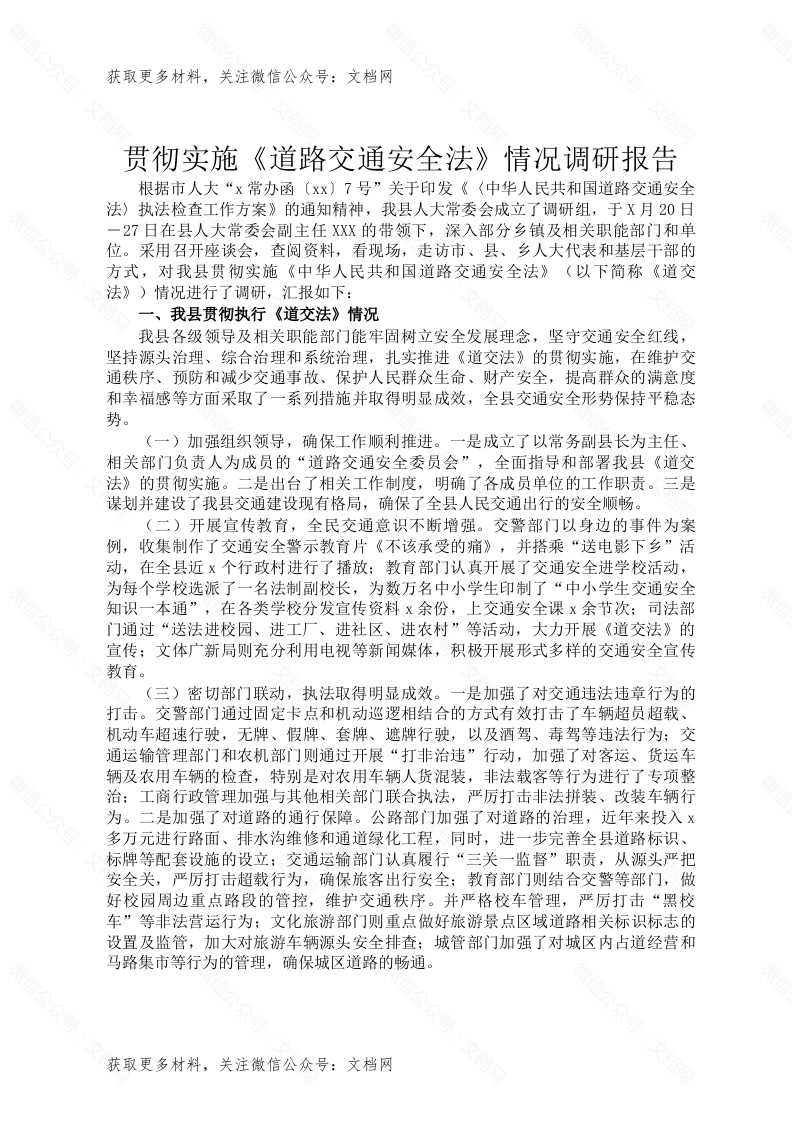 首页学习提升贯彻实施《道路交通安全法》情况调研报告