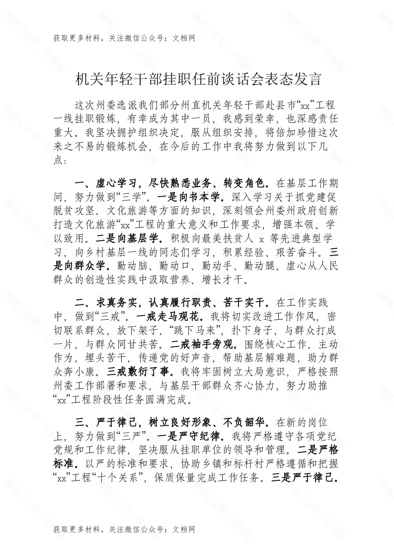 首页学习提升机关年轻干部挂职任前谈话会表态发言