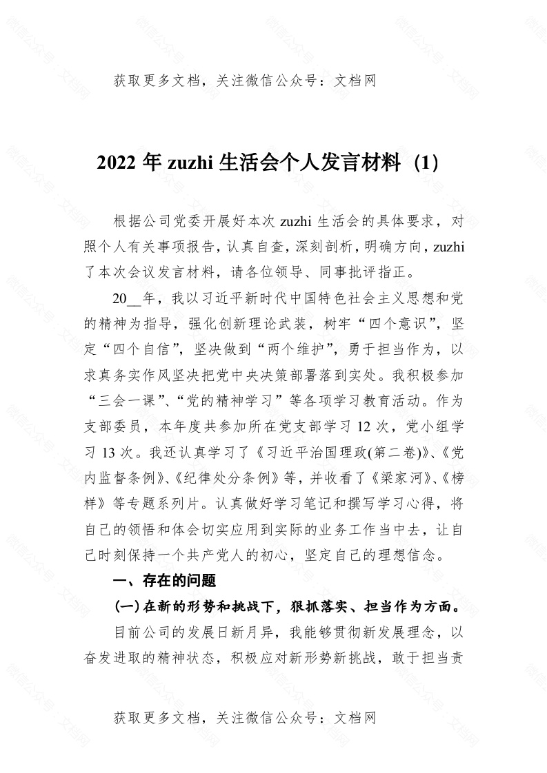 首页讲课讲稿2022年zuzhi生活会个人发言材料(1)