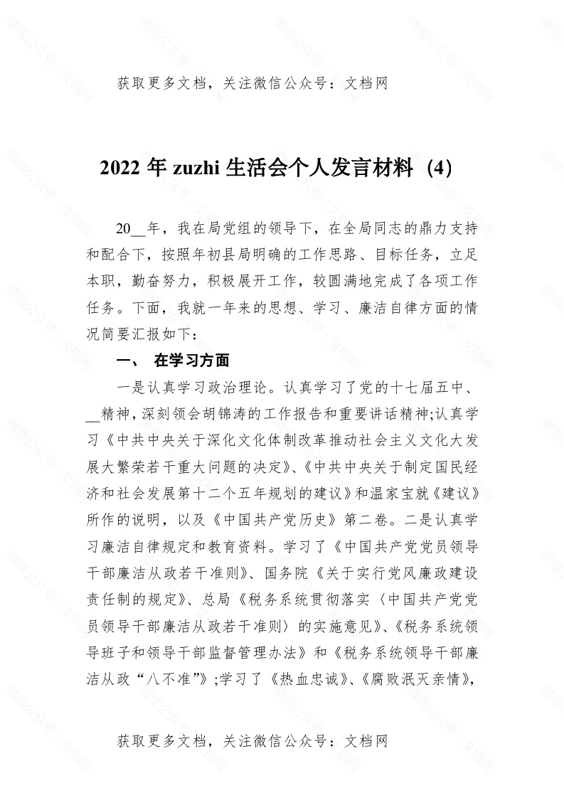 首页讲课讲稿2022年zuzhi生活会个人发言材料(4)