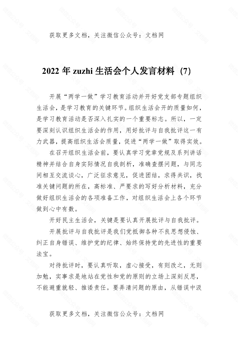 首页讲课讲稿2022年zuzhi生活会个人发言材料(7)