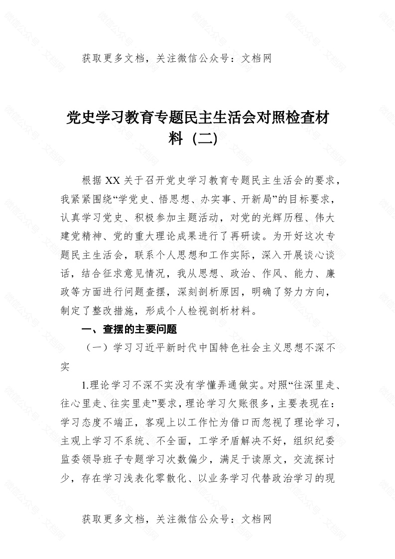 首页写作素材党史学习教育专题mzshh对照检查材料(二)