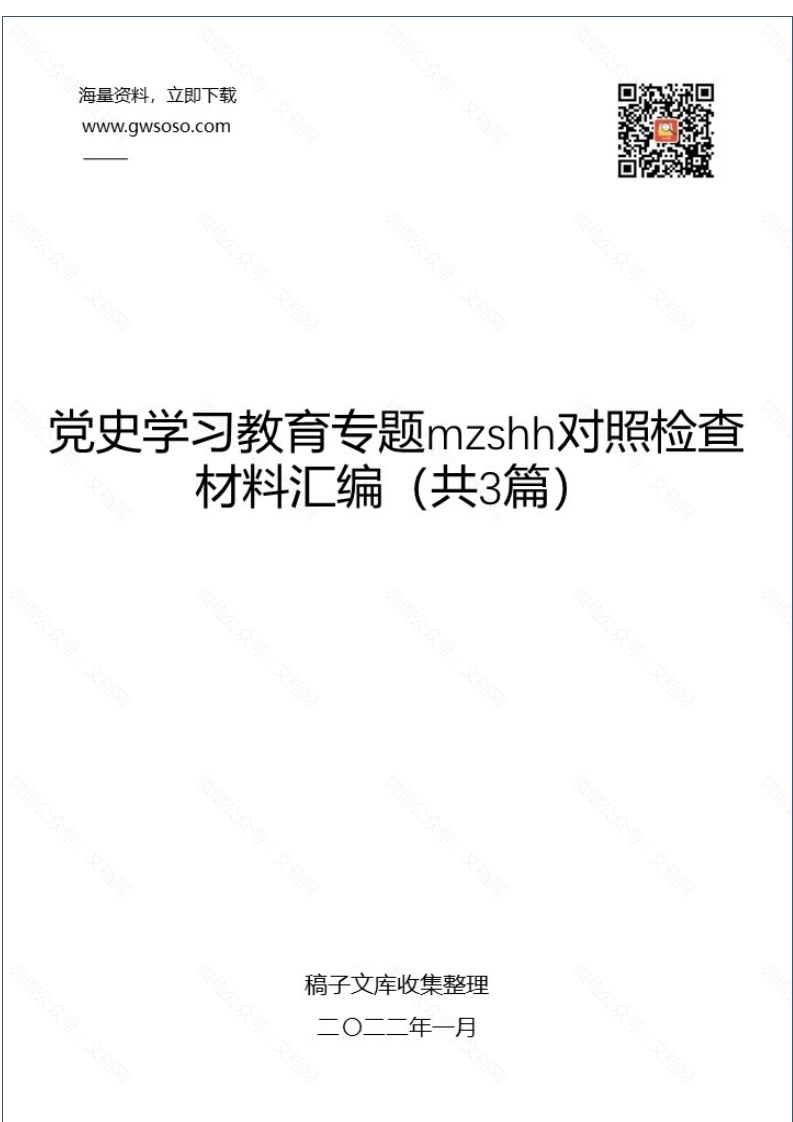 首页写作素材党史学习教育专题mzshh对照检查材料汇编(共3篇)