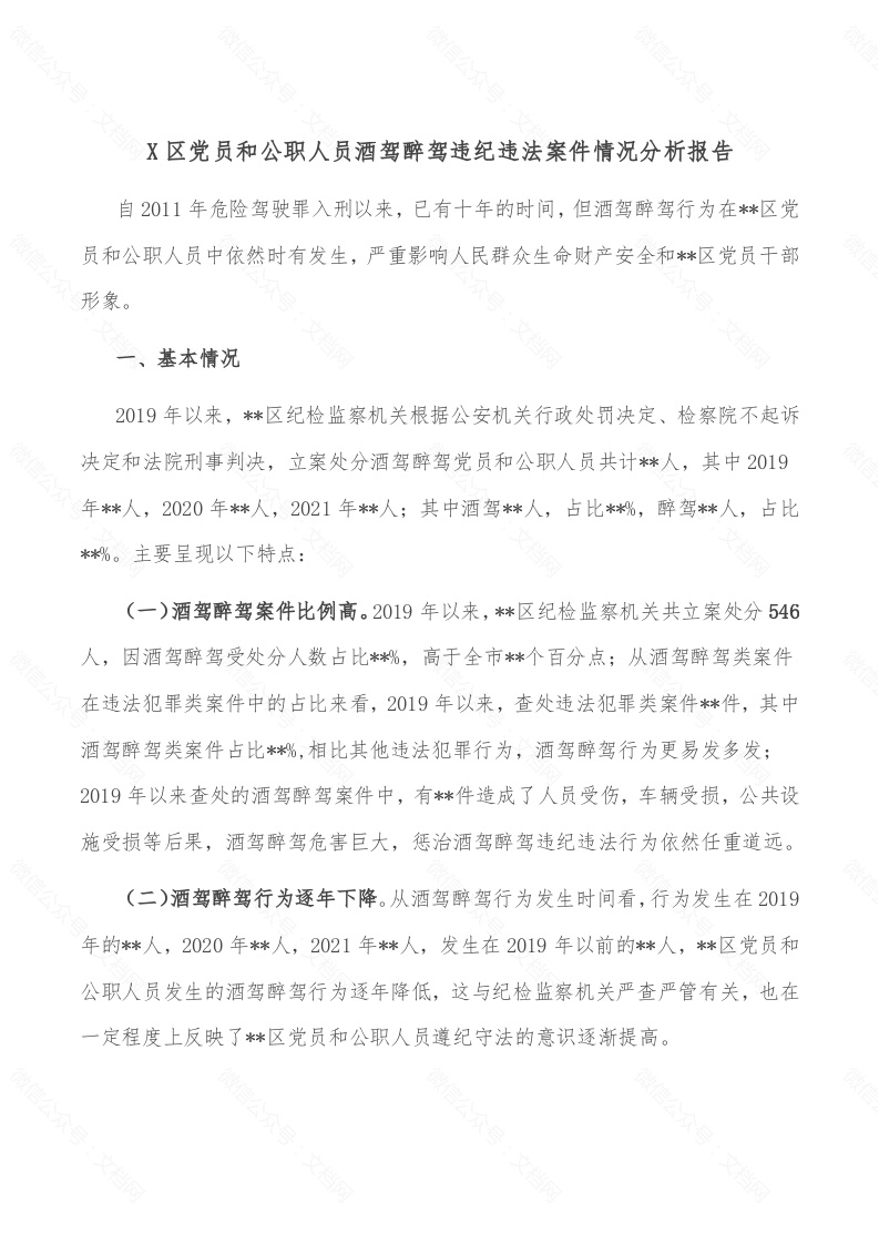 首页材料汇编X区党员和公职人员酒驾醉驾违纪违法案件情况分析报告