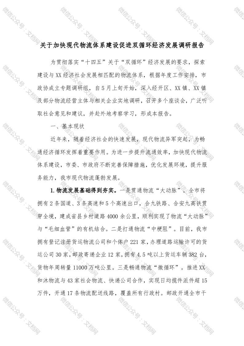 关于加快现代物流体系建设促进双循环经济发展调研报告