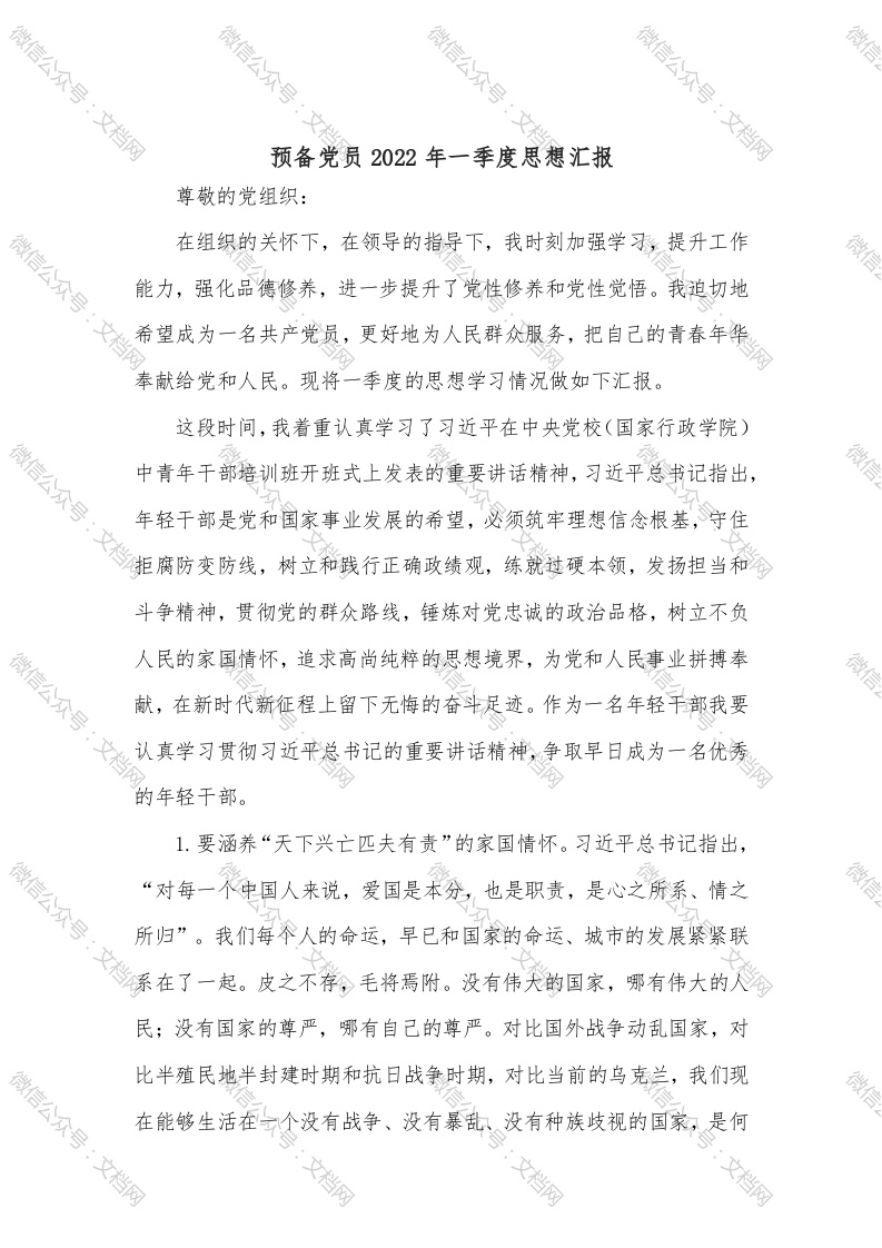 预备党员2022年一季度思想汇报