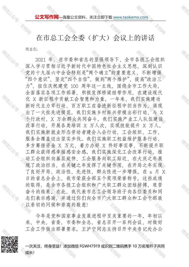 首页学习提升在市总工会全委(扩大)会议上的讲话