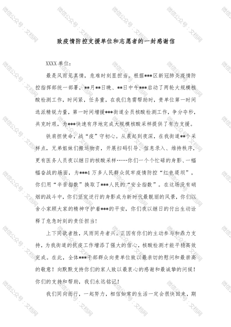 首页工作文档致疫情防控支援单位和志愿者的一封感谢信