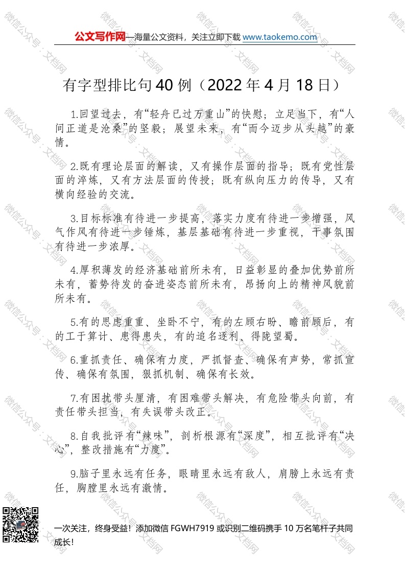 有字型排比句40例(2022年4月18日)
