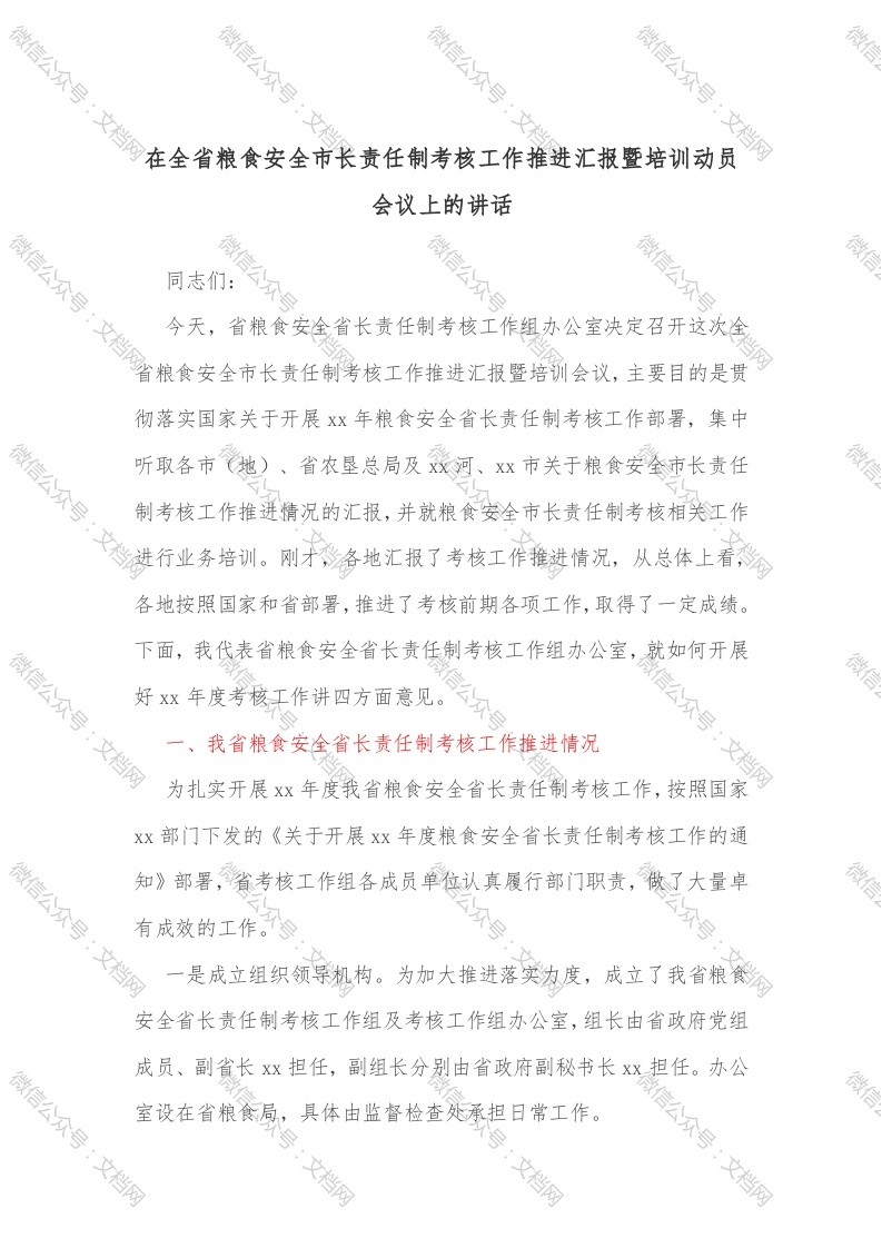 - 在全省粮食安全责任制考核工作动员部署视频会上的讲话