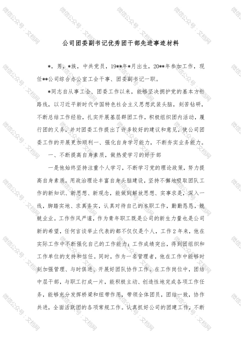 首页精选范文公司团委副书记优秀团干部先进事迹材料