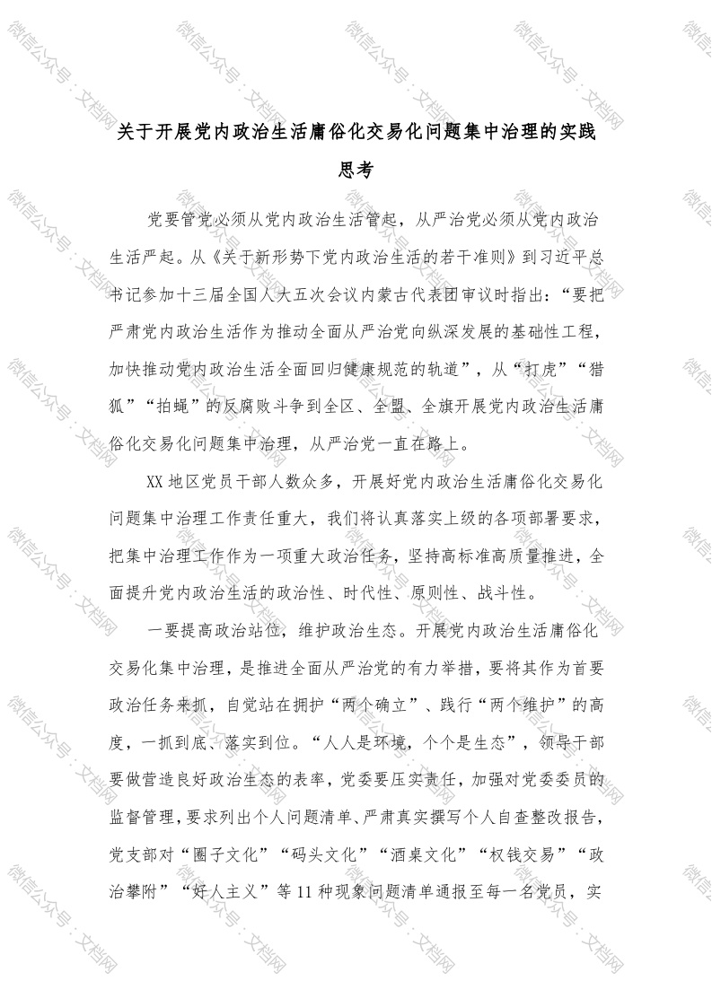 关于开展党内政治生活庸俗化交易化问题集中治理的实践思考