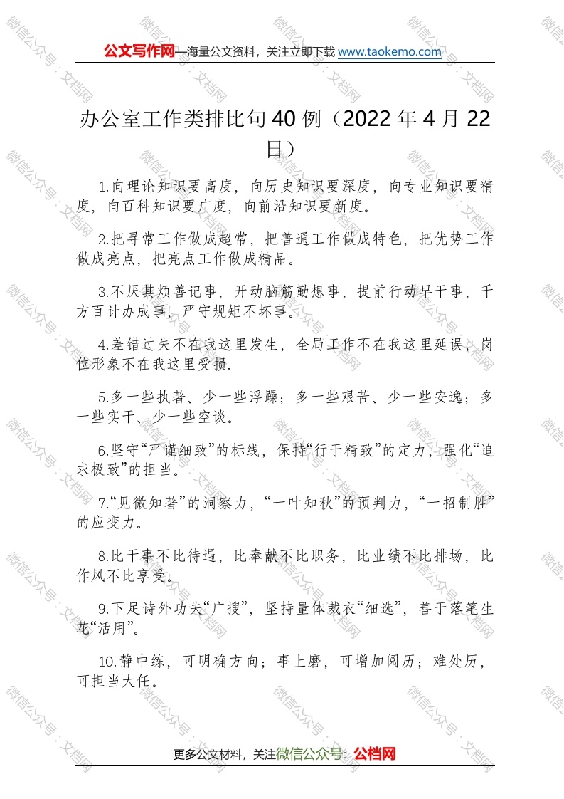 办公室工作类排比句40例(2022年4月22日)