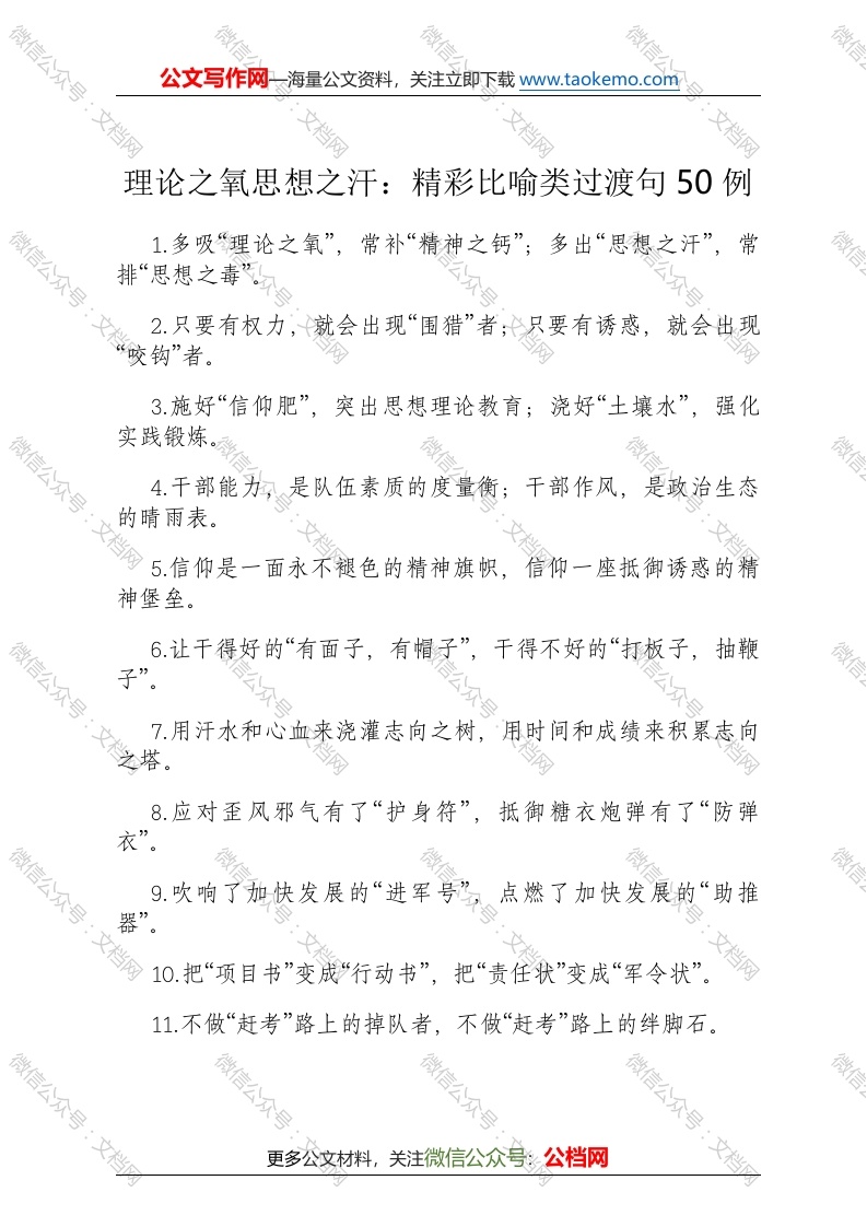 理论之氧思想之汗:精彩比喻类过渡句50例