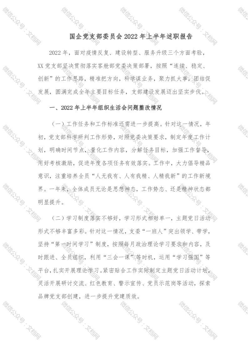 首页精选范文国企党支部委员会2022年上半年述职报告