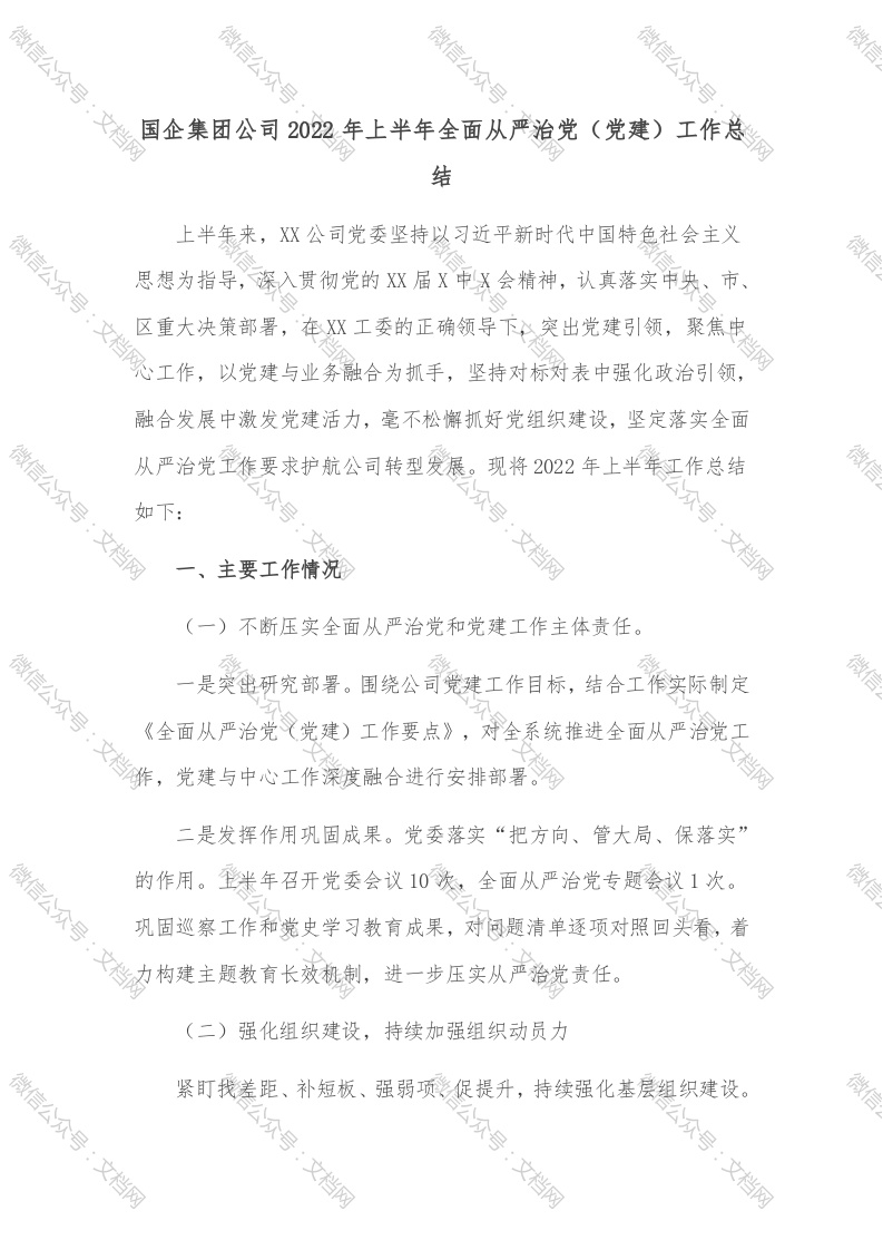 首页精选范文国企集团公司2022年上半年全面从严治党(党建)工作总结