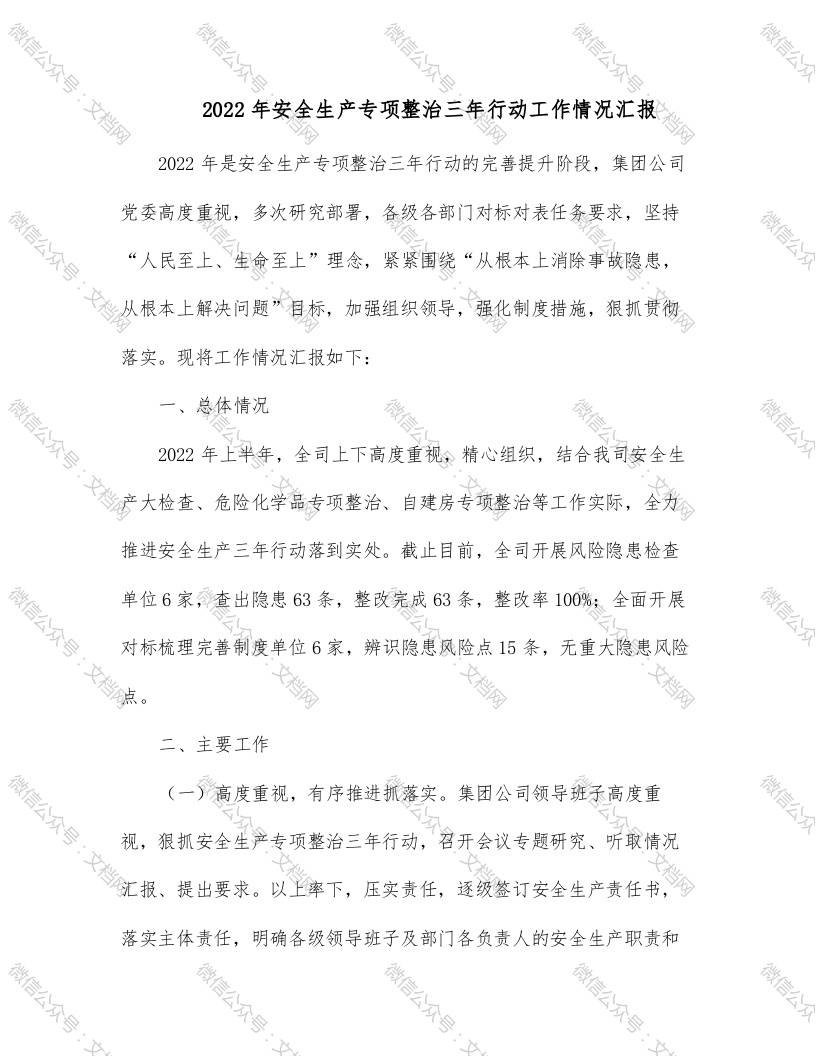 首页精选范文2022年安全生产专项整治三年行动工作情况汇报