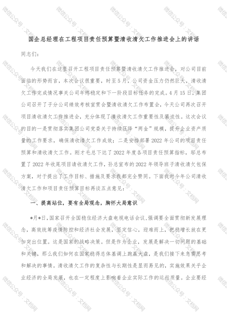 首页精选范文国企总经理在工程项目责任预算暨清收清欠工作推进会上的讲话