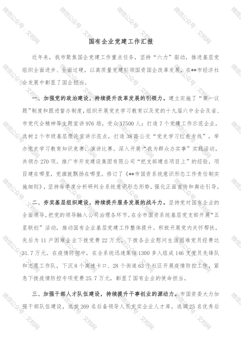 首页精选范文国有企业党建工作汇报