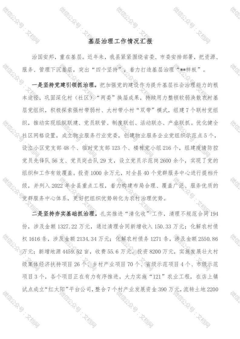 基层治理工作情况汇报
