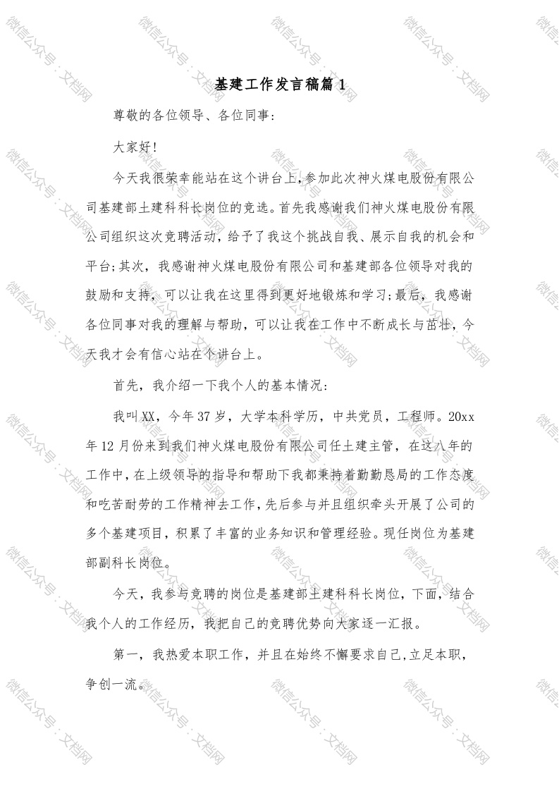 基建工作发言稿