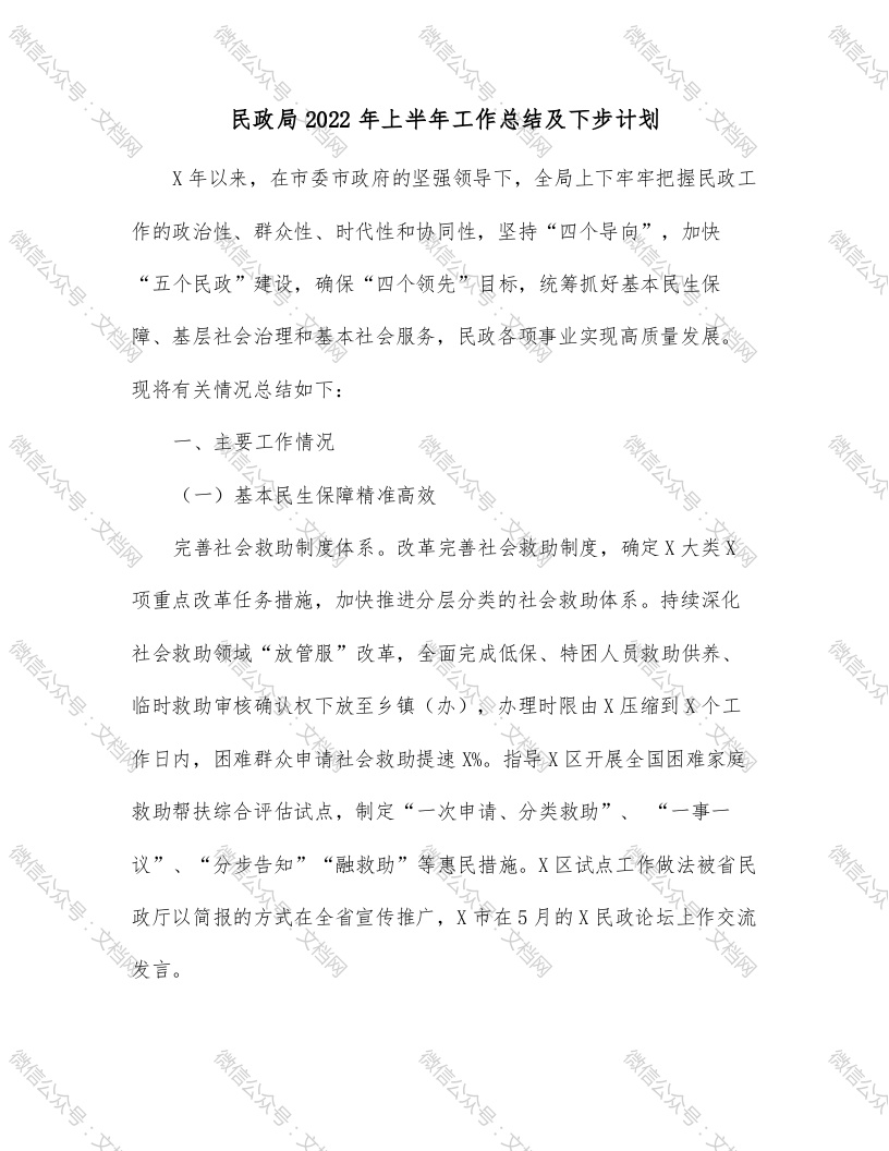首页精选范文民政局2022年上半年工作总结及下步计划
