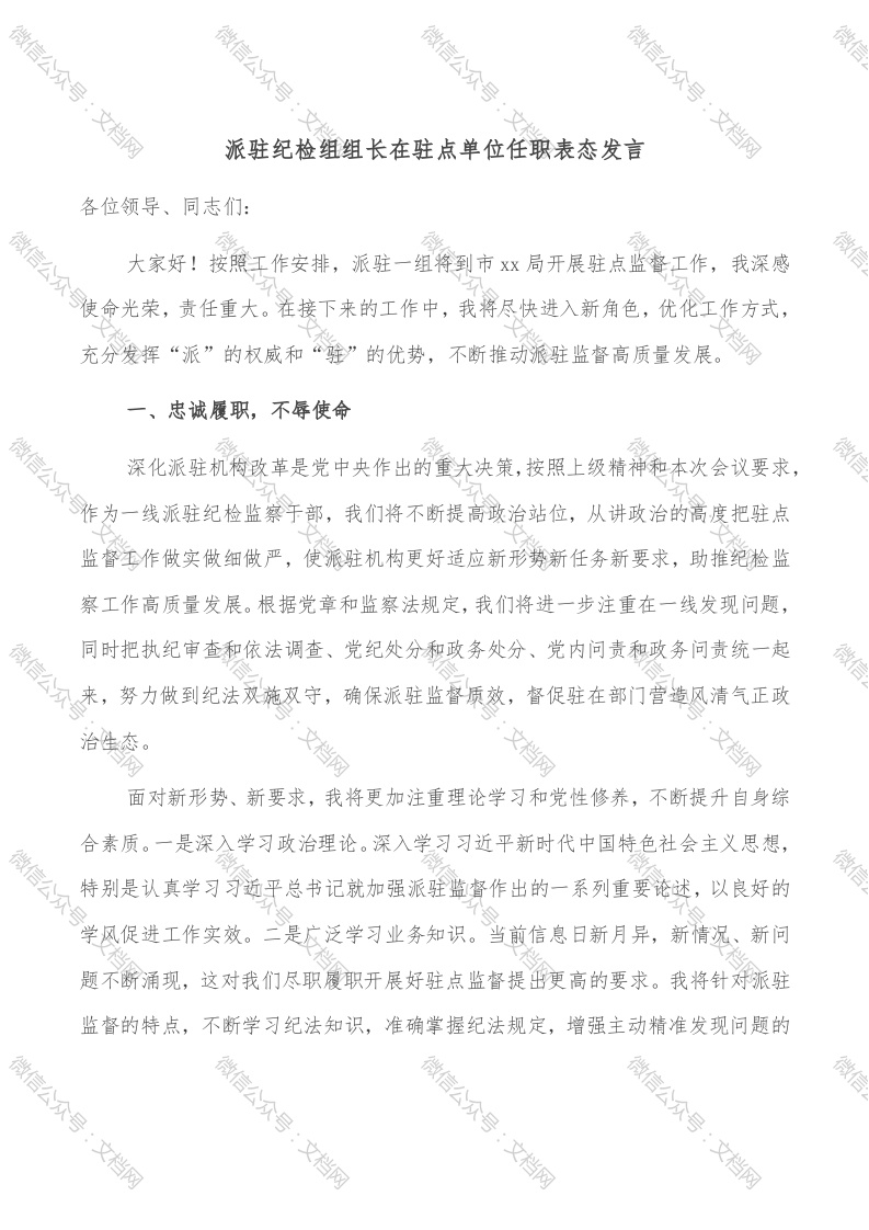 首页精选范文派驻纪检组组长在驻点单位任职表态发言
