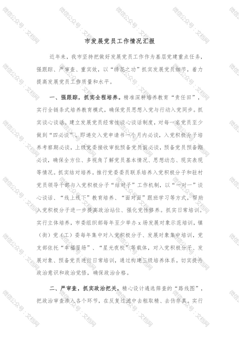 市发展党员工作情况汇报
