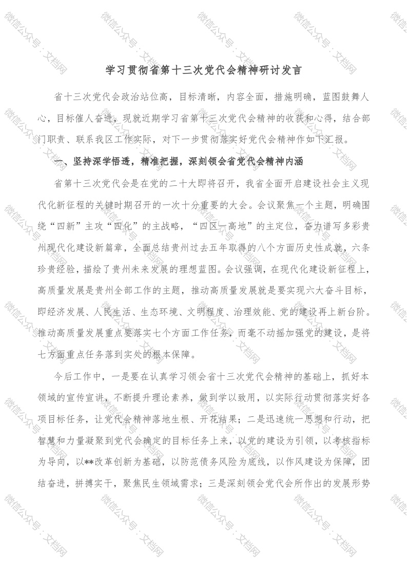 首页精选范文学习贯彻省第十三次党代会精神研讨发言