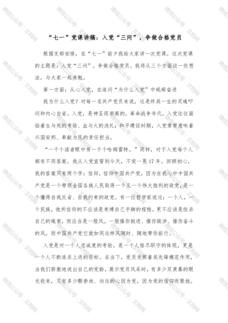“七一”党课讲稿:入党“三问”,争做合格党员