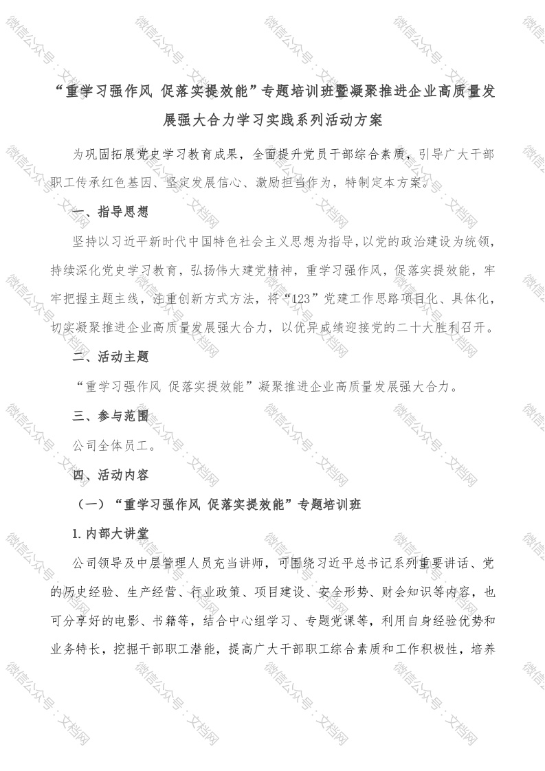 首页精选范文“重学习强作风 促落实提效能”专题培训班暨凝聚推进企业高质量发展强大合力学习实践系列活动方案