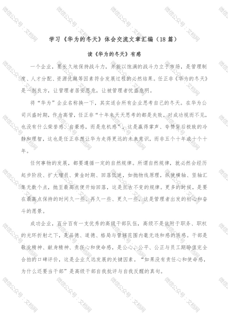 首页精选范文(18篇)学习《华为的冬天》体会交流文章汇编