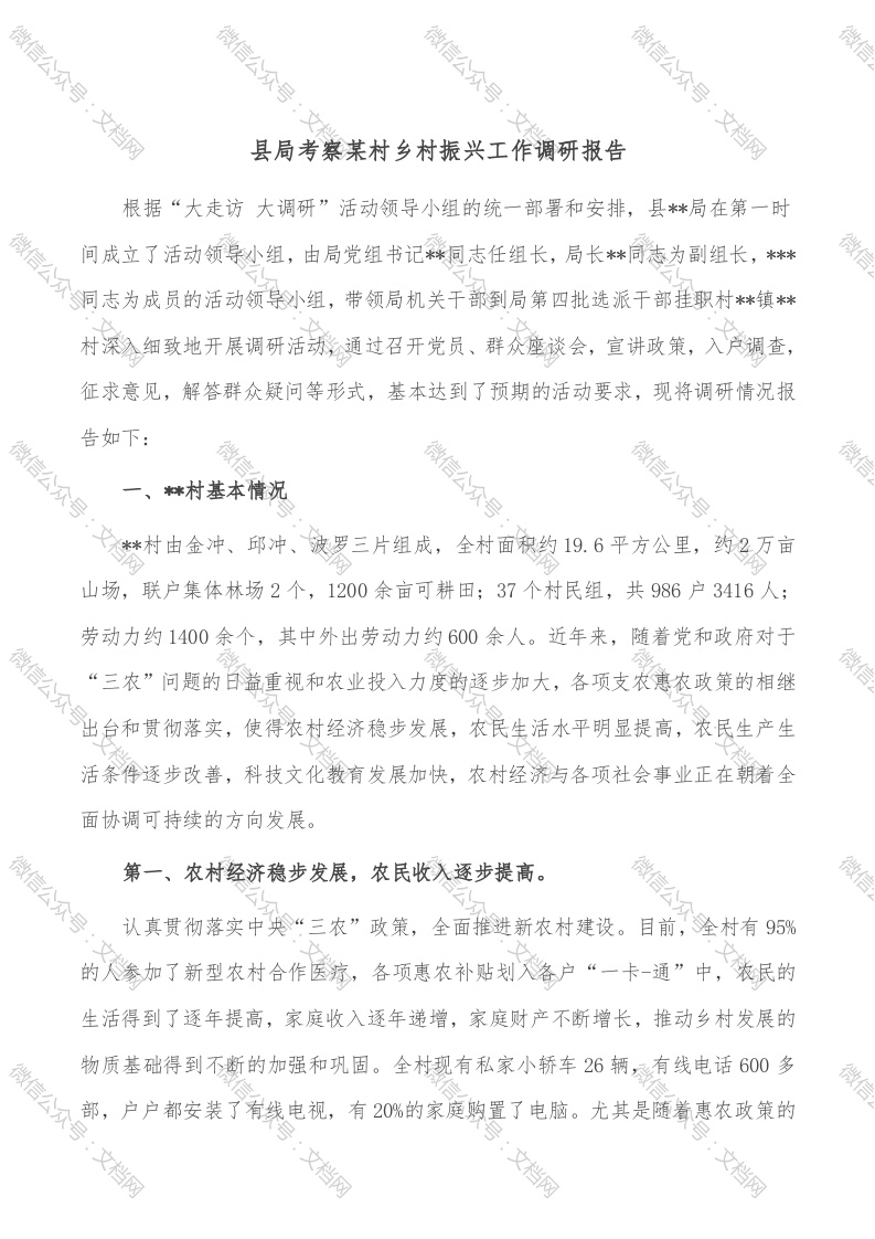 县局考察某村乡村振兴工作调研报告
