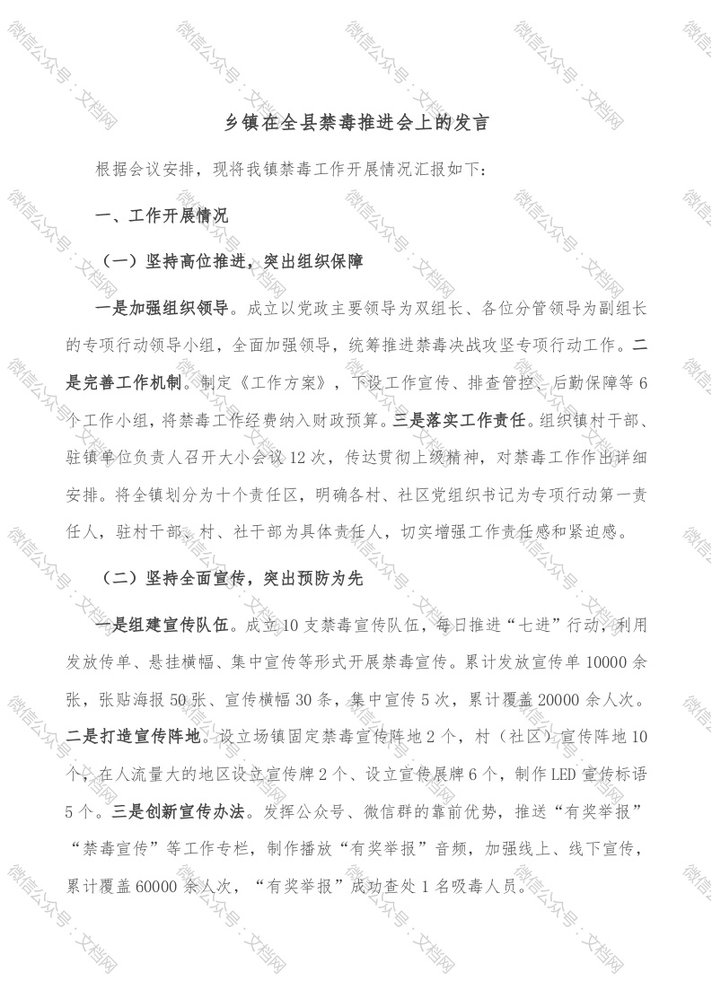 乡镇在全县禁毒推进会上的发言
