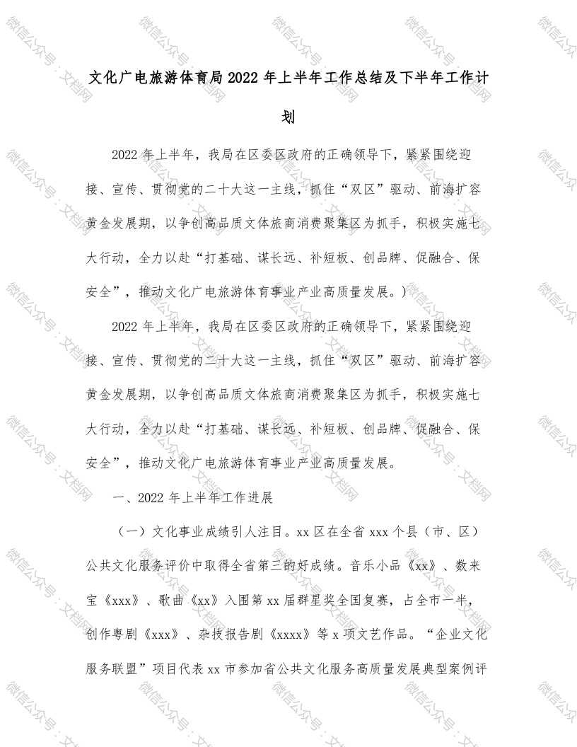 文化广电旅游体育局2022年上半年工作总结及下半年工作计划
