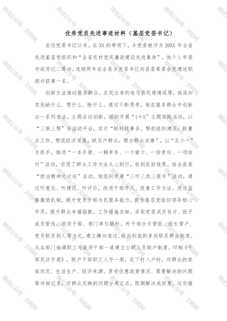 首页讲课讲稿优秀党员先进事迹材料(基层党委书记)