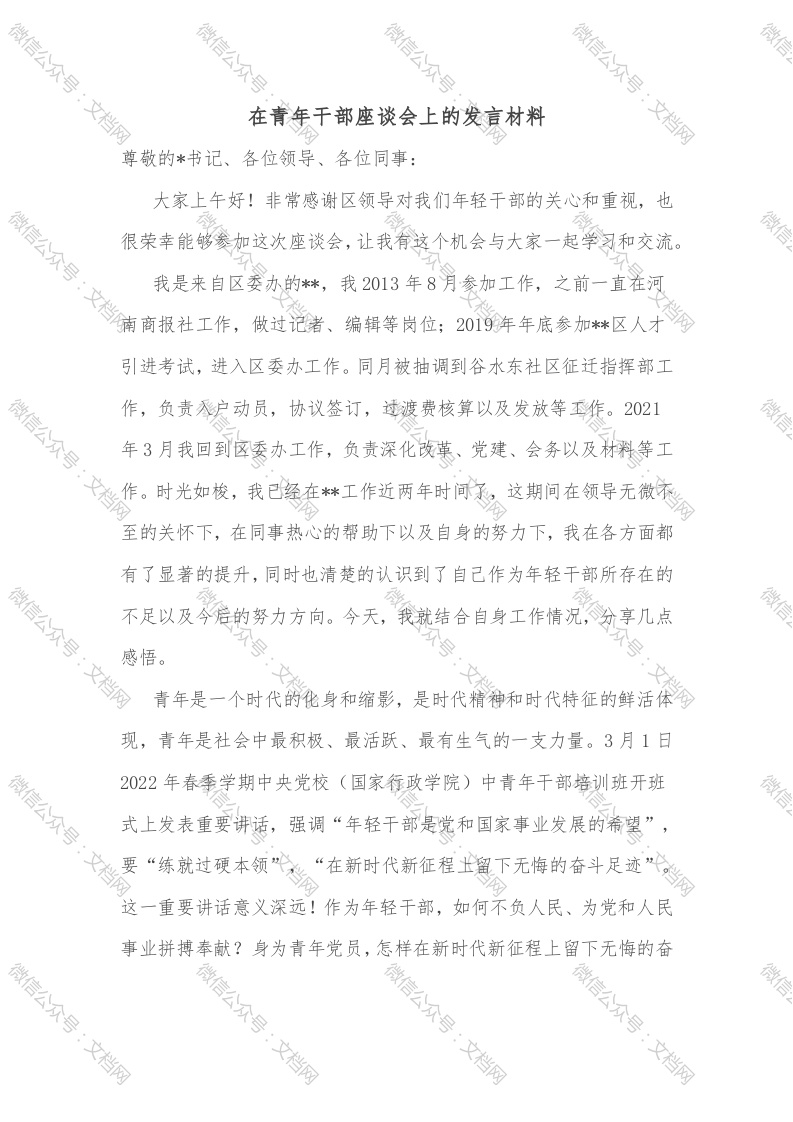 首页讲课讲稿在青年干部座谈会上的发言材料