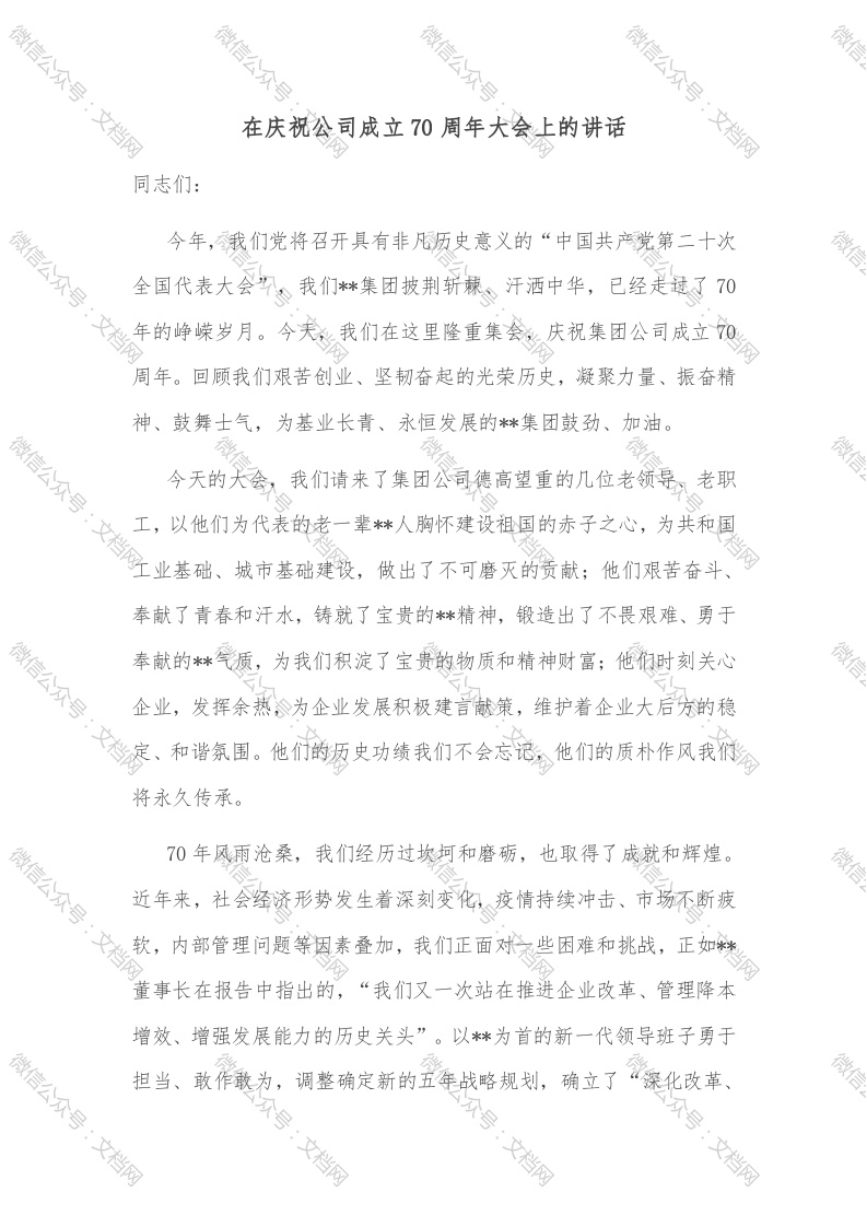 首页讲课讲稿在庆祝公司成立70周年大会上的讲话