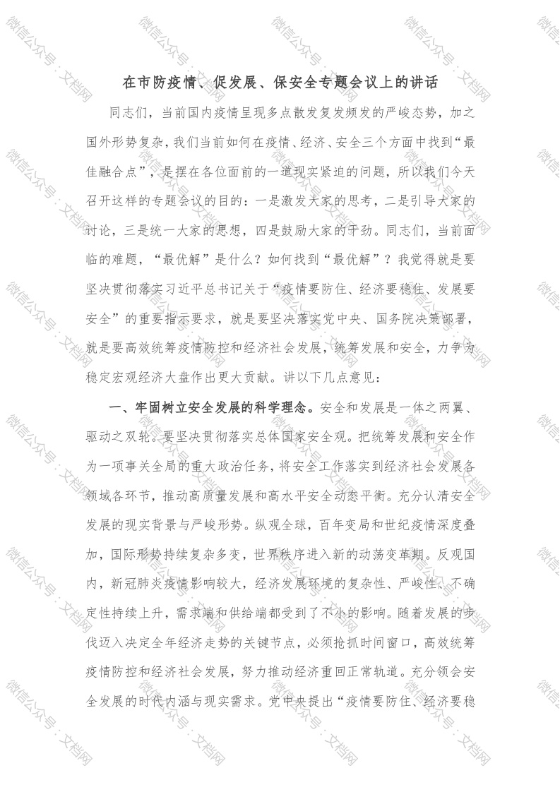 首页讲课讲稿在市防疫情、促发展、保安全专题会议上的讲话