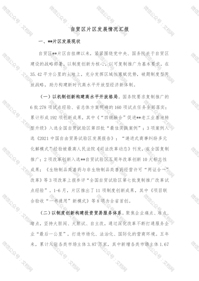 自贸区片区发展情况汇报