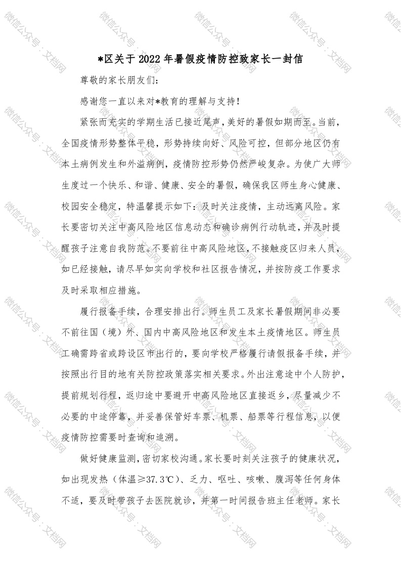 首页精选范文区关于2022年暑假疫情防控致家长一封信
