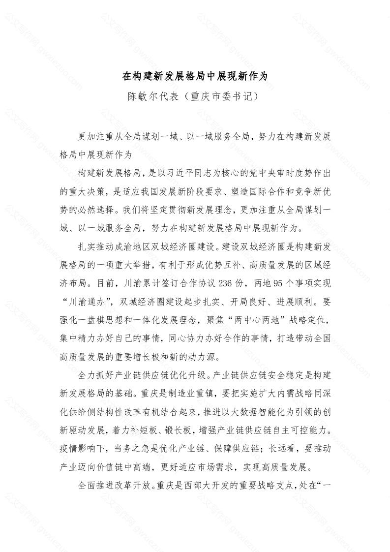 首页精选范文“两会·声音”陈敏尔:在构建新发展格局中展现新作为