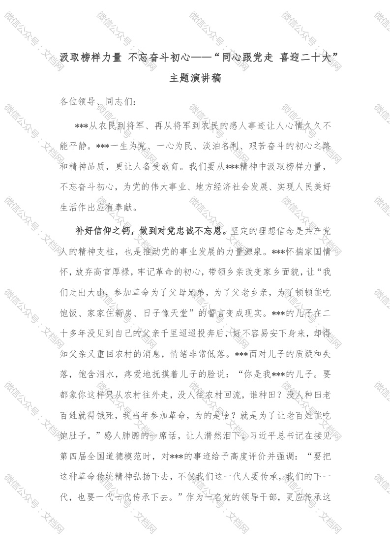 汲取榜样力量 不忘奋斗初心——“同心跟党走 喜迎二十大”主题演讲稿
