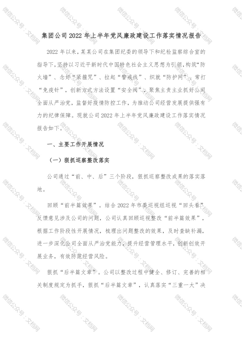 首页讲课讲稿集团公司2022年上半年党风廉政建设工作落实情况报告
